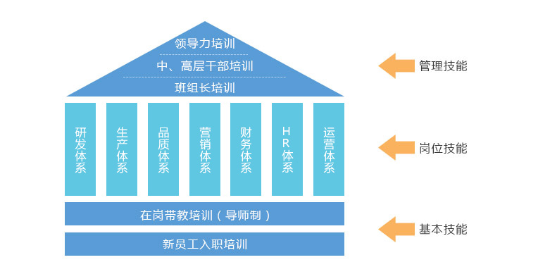 澳门太阳网城官网根据员工的职业生涯发展及岗位技能要求,有科学先进的培训体系,分别为:新员工入职培训、在岗带教培训(导师制)、岗位专业培训、班组长培训、中、高层干部培训、领导力培训等。并拥有现代化的培训室、公司内、外部资深培训师,能满足不同层级员工的技能需求。